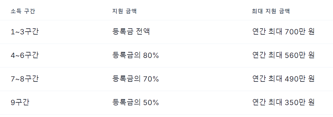 - 학자금 지원 구간 변동 가능성: 소득 구간은 매년 변동될 수 있습니다.