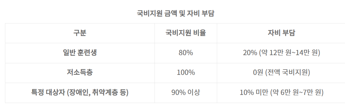 국비 지원 꼼꼼히 활용하고, 교육기관별 교육비와 환급 제도를 비교해서 자신에게 딱 맞는 조건을 선택하세요!