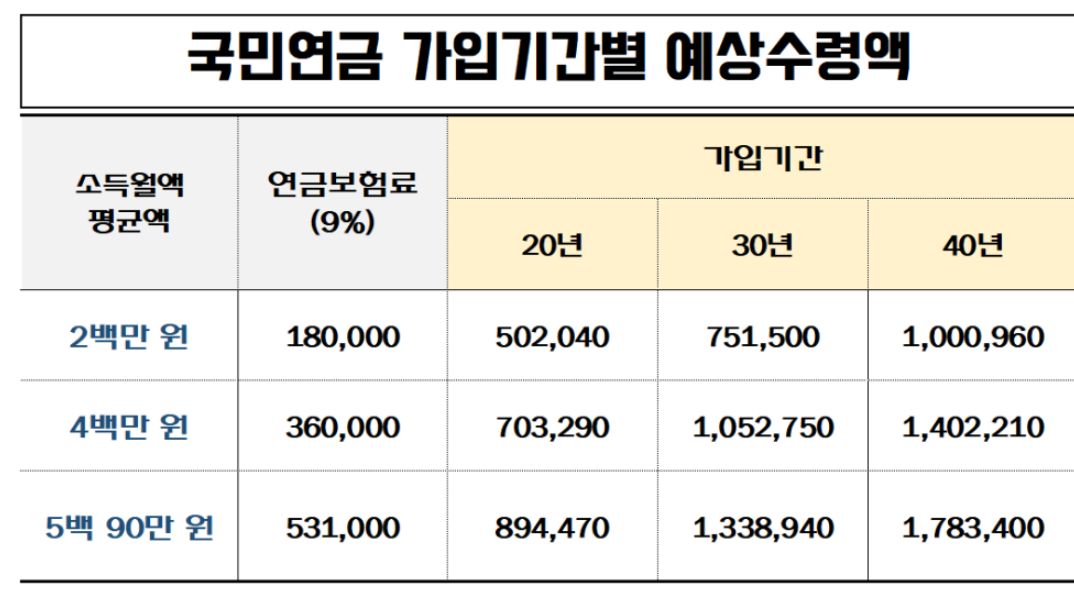 가입 기간이 길면 길수록 수령액도 쭉쭉 올라갑니다!