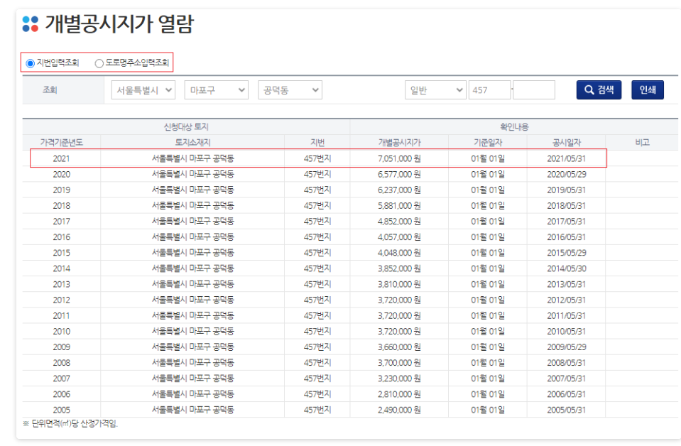 - 토지/주택 공시가격 조회: 지번, 도로명주소, 행정구역 등 다양한 검색 조건으로 원하는 정보를 쏙쏙!
