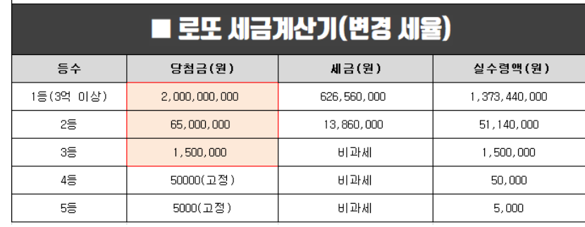 주의: 위 금액은 예상치이며, 실제 당첨금 및 실수령액은 변동될 수 있습니다.