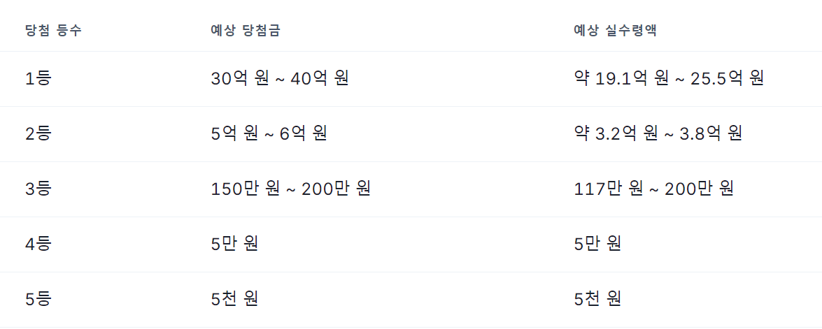 2025년 로또 당첨금 예상 및 실수령액
